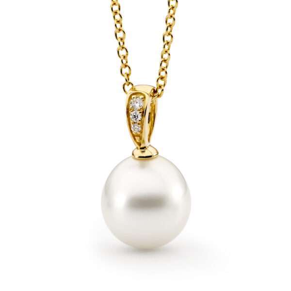 View Product: Split Bale Trio Diamond & Pearl Pendant