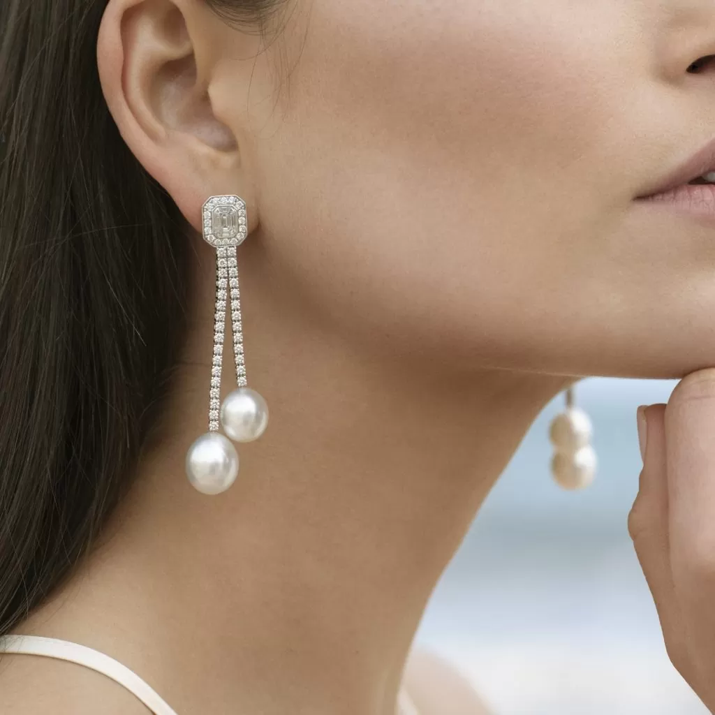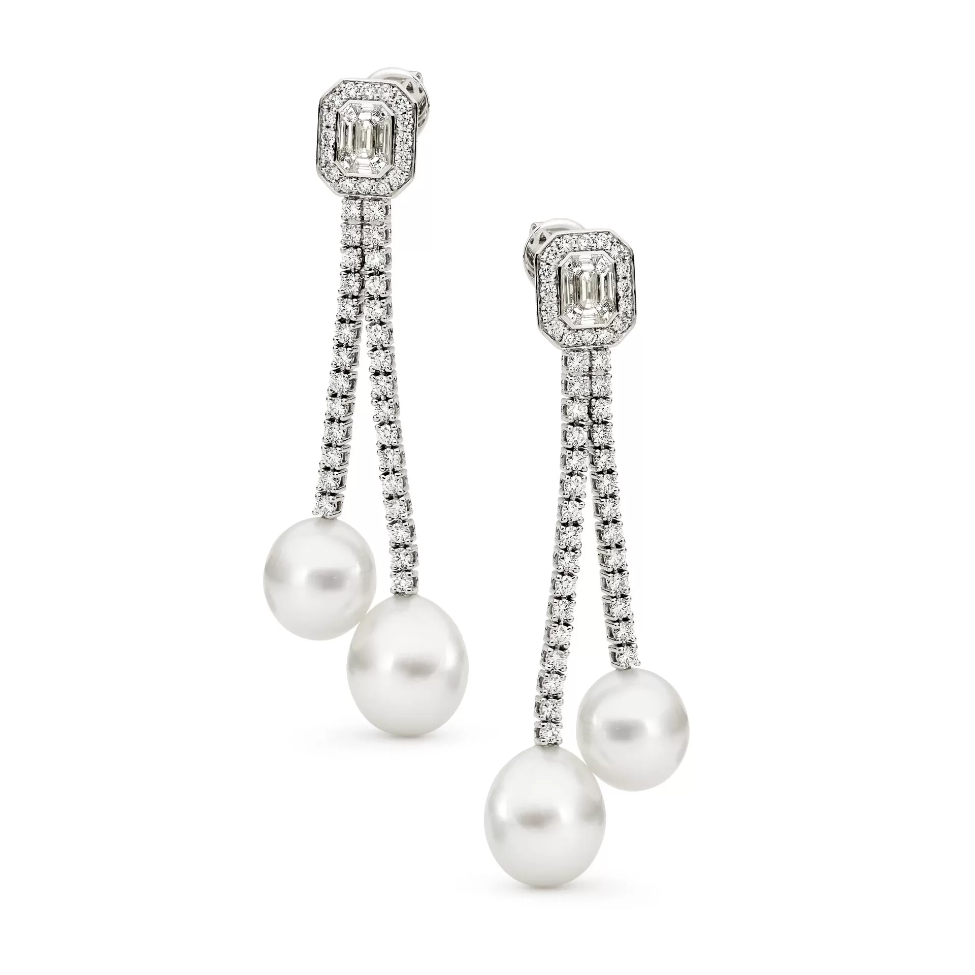 These earrings are complete with 2x 11-12mm & 2x 12-13mm oval/drop Australian South Sea cultured pearls