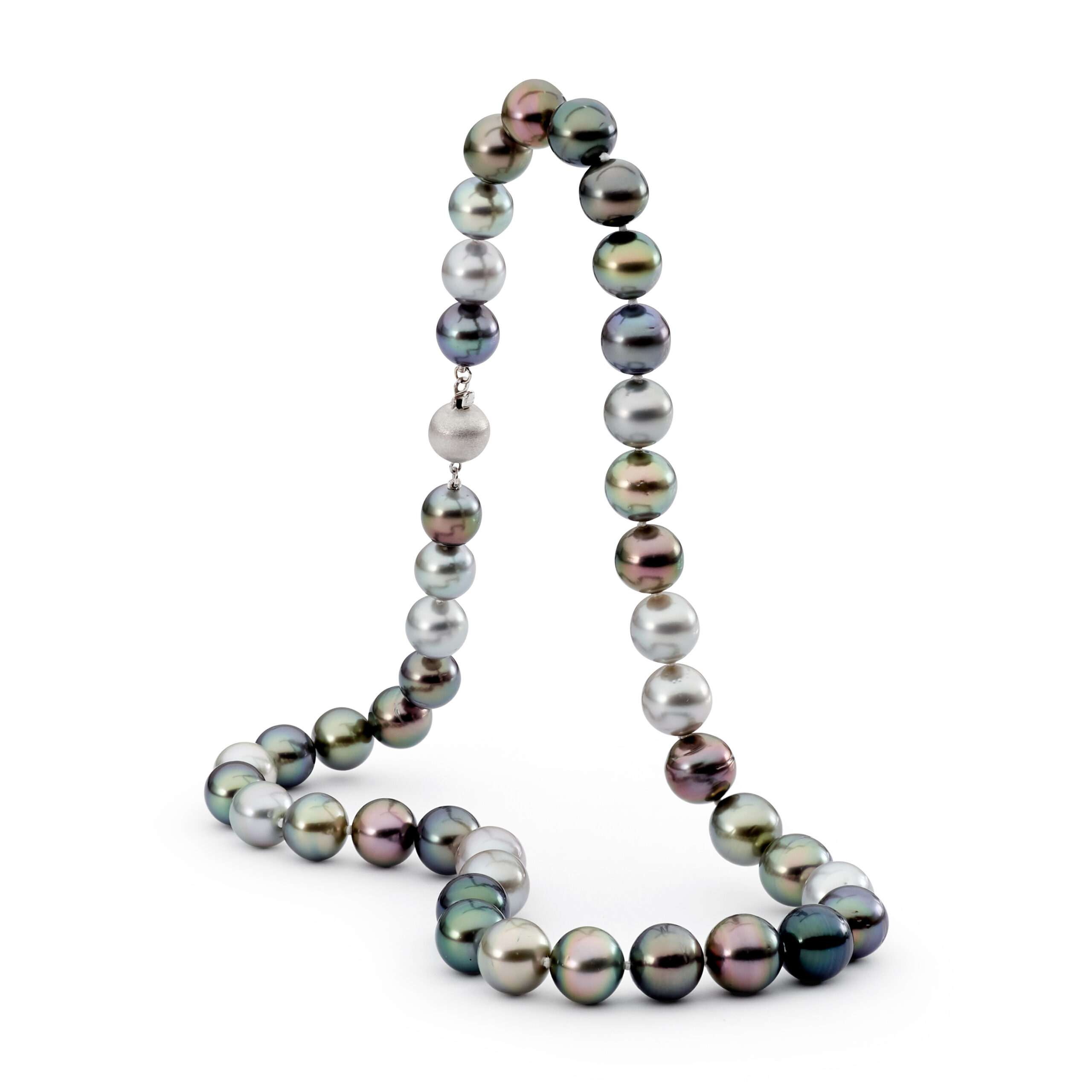 This strand is complete with a 9mm 18ct white gold brushed ball clasp.