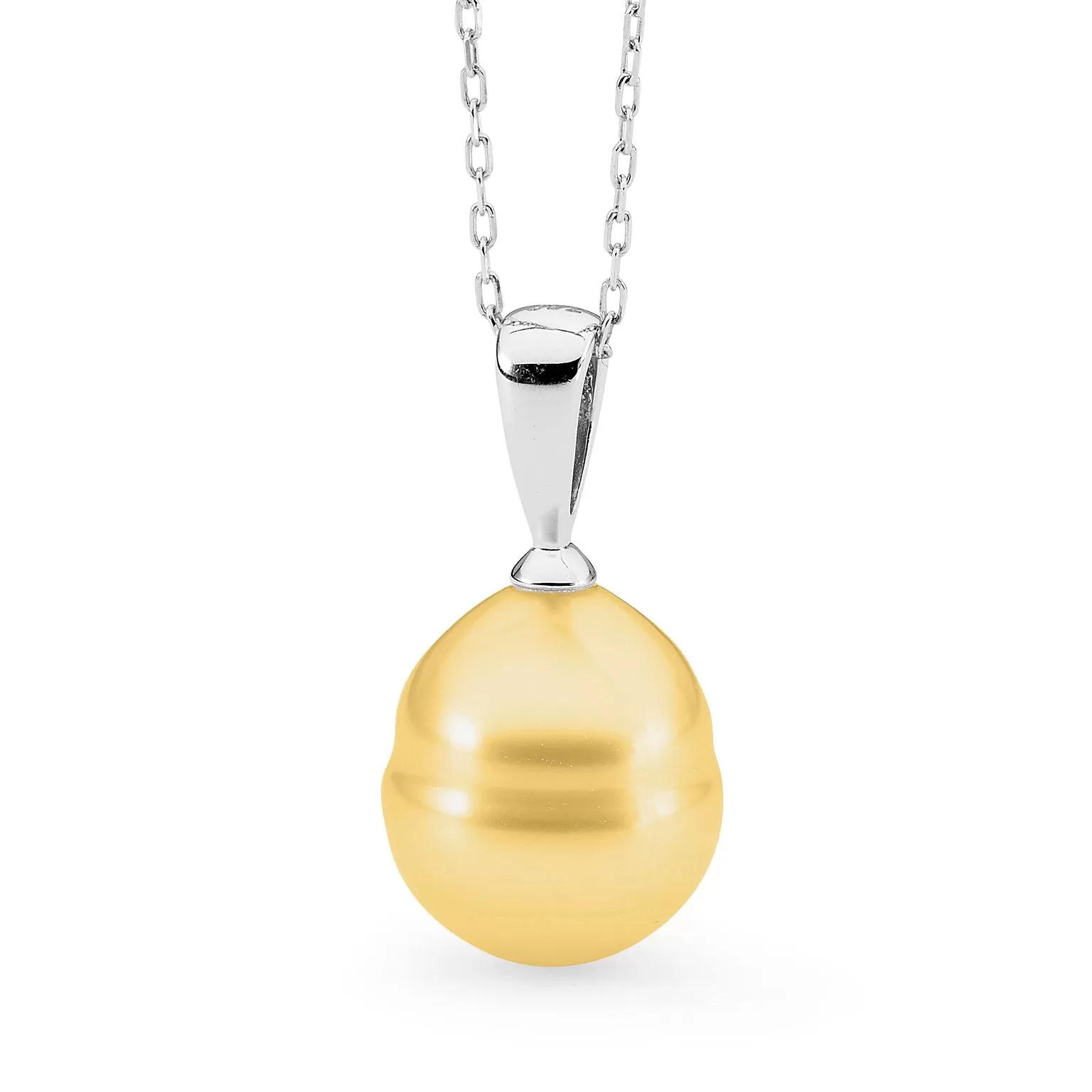 A timeless style, this classic circle pearl pendant features a lustrous oval/circle South Sea pearl. Available in 18ct yellow or white gold, with three pearl colour variations. Please select your desired colour and size from