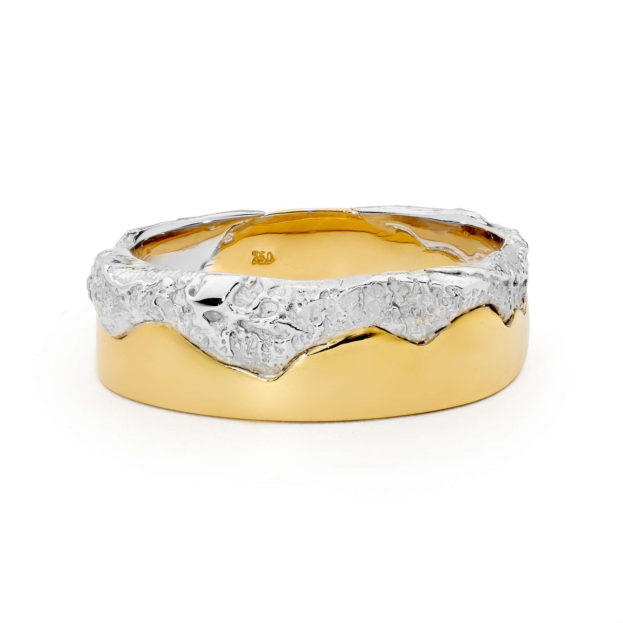This handcrafted “Seafoam” ring features a striking two-tone design, using both 18ct yellow gold and 18ct white gold.